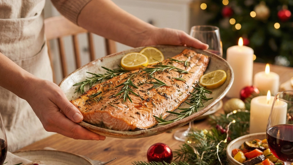 Peixes e frutos do mar são fontes de proteínas de alta qualidade, ricos em vitaminas, minerais e gorduras boas, como o ômega-3. Além disso, tendem a ser mais leves e de fácil digestão, algo especialmente importante em períodos em que as refeições são mais longas e abundantes.